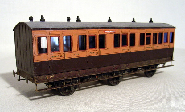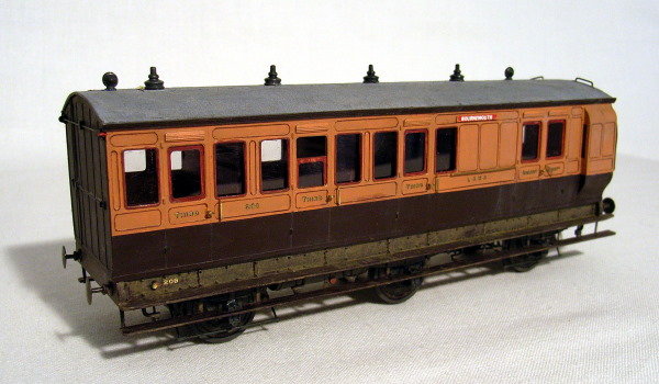 Left and Below: Two of Norman's superb carriages. These two are part of set of six wheelers. The real sets were permanently coupled hence the short buffers on the inner ends of the Brake and both ends of the Composite. Both photos Maurice Hopper